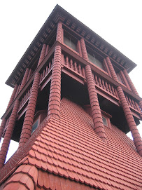 De har tatt med det vakre klokketårnet fra det gamle rådhuset, gitt det en skikkelig oppussing og satt det ved siden av huset, riktig elegant er det blitt.